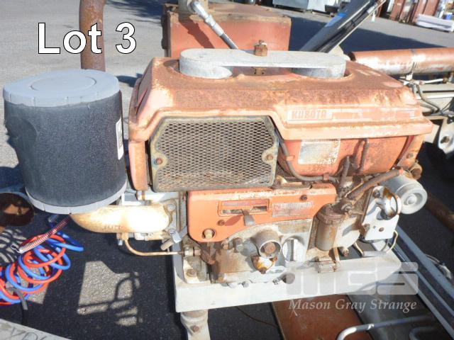 TANDEM AXLE CABLE REELOUT TRAILER MODEL: XP60 VIN / CHASSIS: ID: 1057090 PLANT NO: XP60 HYDRAULIC DRIVE, POWERED BY KUBOTA DIESEL ENGINE TRAILER AIR BRAKES & RING PULL HITCH