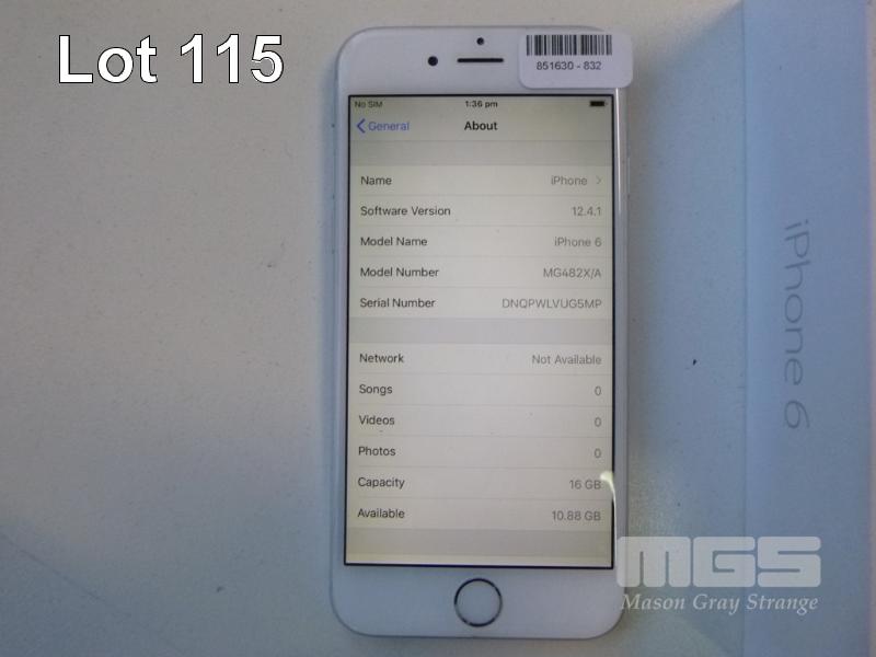 APPLE iPHONE 6, 16GB, SILVER, MODEL A1586 (NO CHARGER, NO CABLE) S/N:DNQPWLVUG5MP