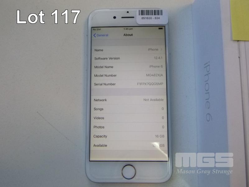 APPLE iPHONE 6, 16GB, SILVER, MODEL A1586 (NO CHARGER, NO CABLE) S/N:F1FPX7QQG5MP