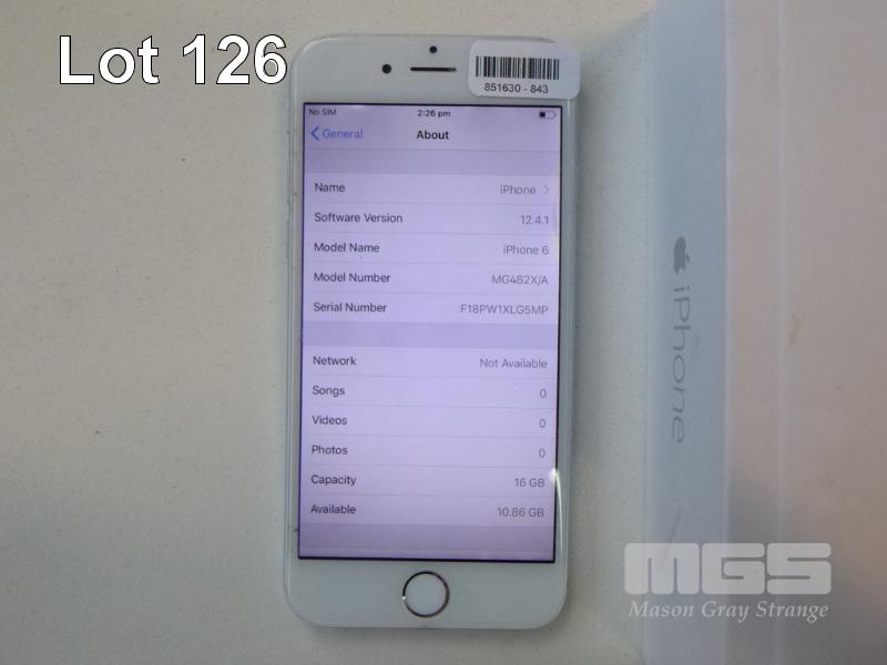 APPLE iPHONE 6, 16GB, SILVER, MODEL A1586 (NO CHARGER, NO CABLE) S/N:F18PW1XLG5MP