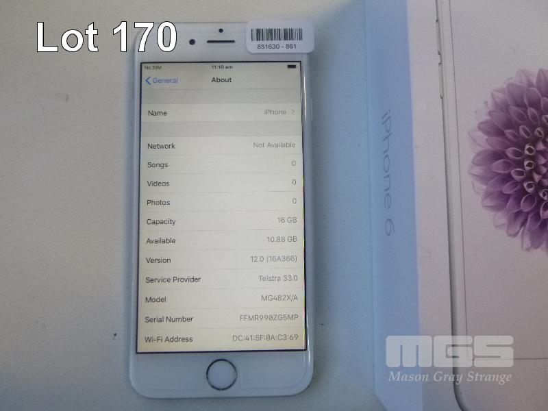 APPLE iPHONE 6, 16GB, SILVER, MODEL A1586 (NO CHARGER, NO CABLE) S/N:FFMR990ZG5MP