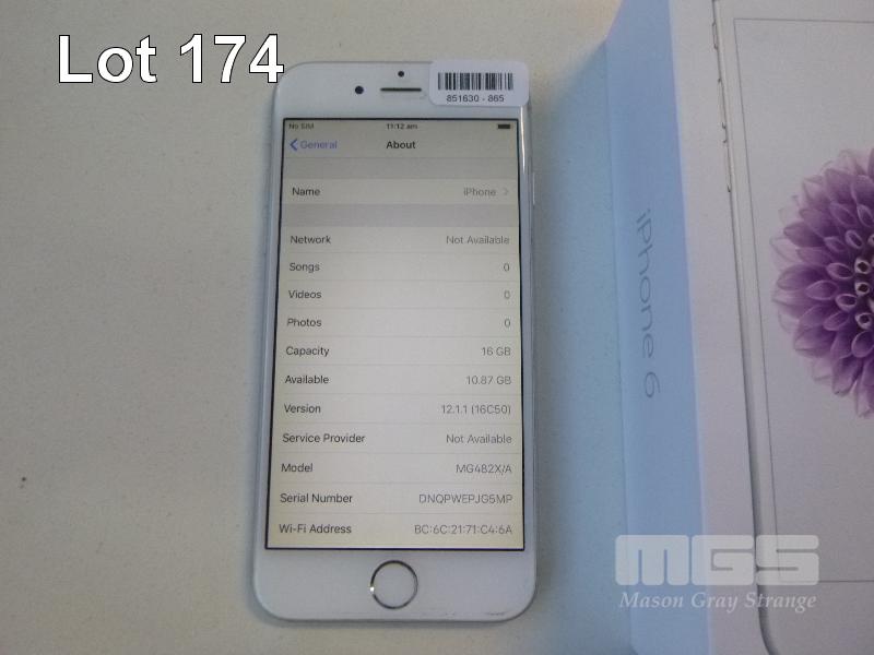 APPLE iPHONE 6, 16GB, SILVER, MODEL A1586 (NO CHARGER, NO CABLE) S/N:DNQPWEPJG5MP