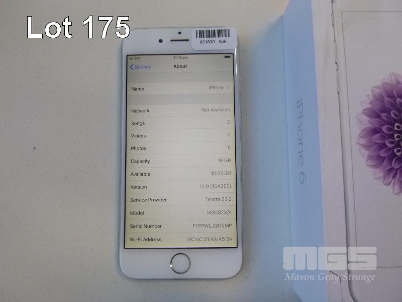 APPLE iPHONE 6, 16GB, SILVER, MODEL A1586 (NO CHARGER, NO CABLE) S/N:F19PWLJQG5MP
