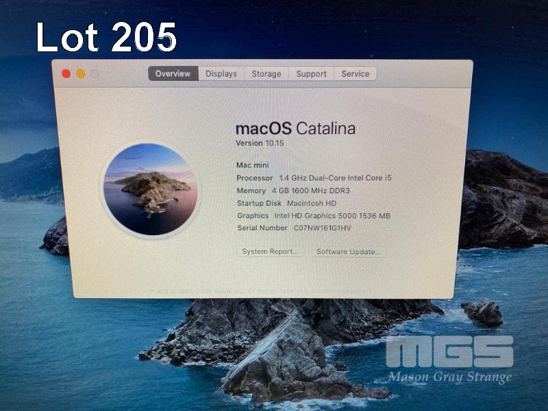 APPLE MAC MINI (A1347), CORE i5 4260U (4TH GEN) @ 1.5GHz, 4GB DDR3 RAM, 500GB SATA HDD, INTEL VIDEO, Wi-Fi, MAC OS 10.15 INSTALLED (NO KEYBOARD, NO MOUSE) (NOTE: MAJOR SCRATCHES ON CASING) S/N:C07NW161G1HV