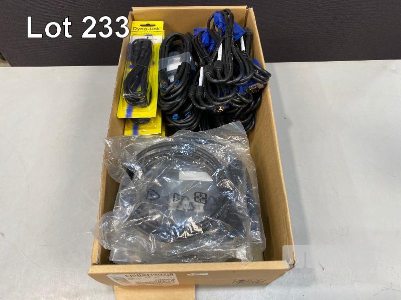 QTY ASST NEW CABLES INC. 10 x DISPLAYPORT, 10 x VGA, 10 x USB 3.0, 4 x AUDIO 3.5mm