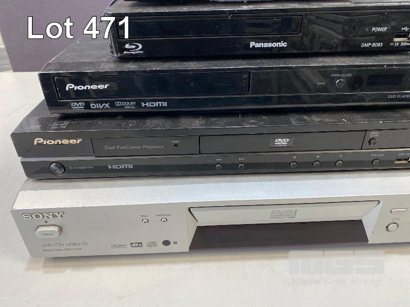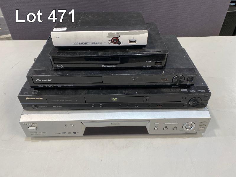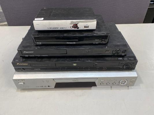 XC4917 HD SET TOP BOX, PANASONIC BLU-RAY PLAYER, 2 x PIONEER DVD PLAYERS, SONY DVD PLAYER (NO REMOTES, NO CABLES)
