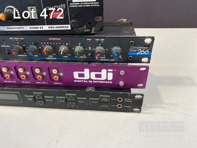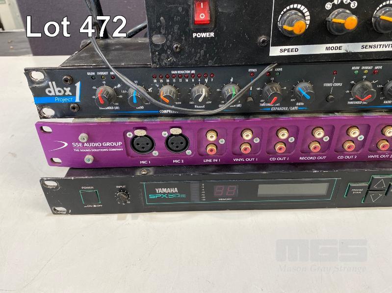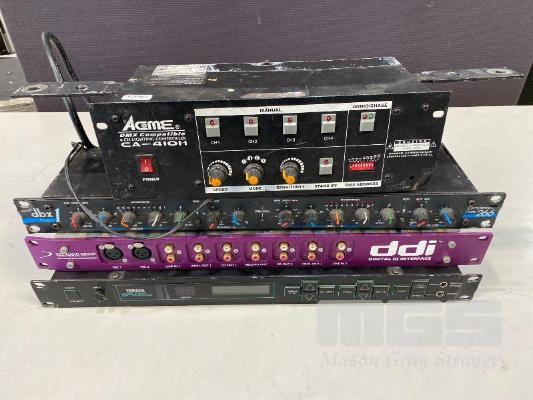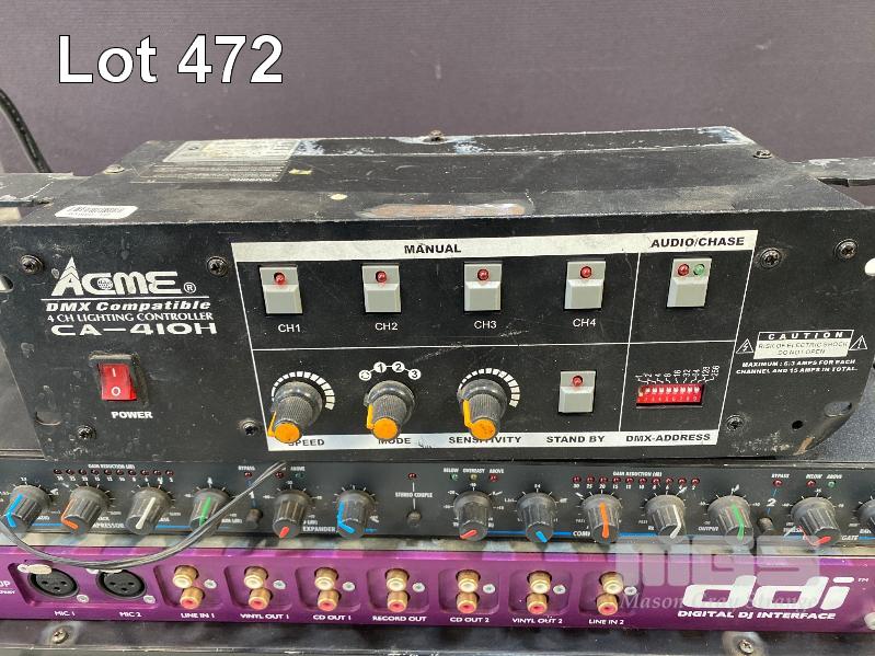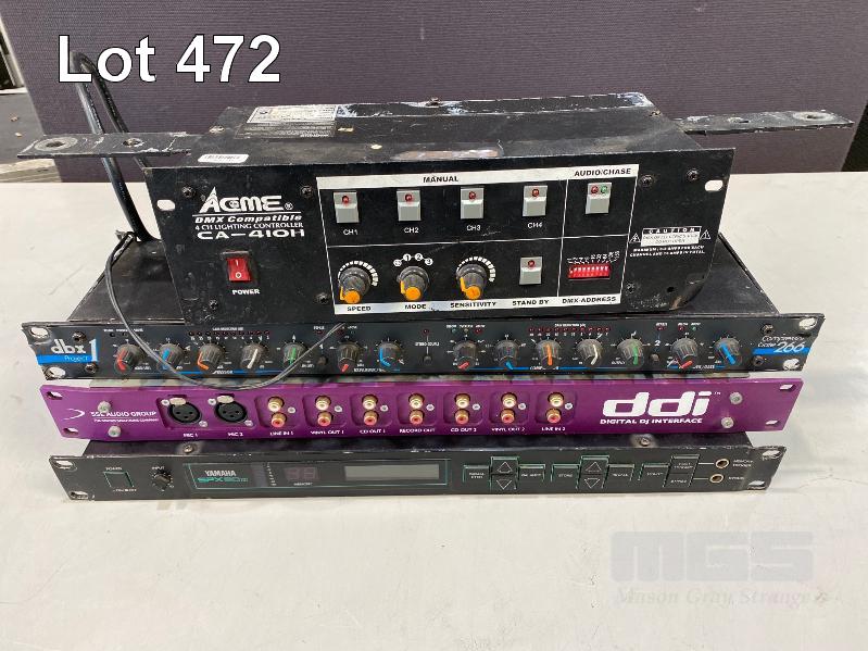 ACME DMX 4 CHANNEL LIGHTING CONTROLLER, CA-410H DBX PROJECT 1 COMPRESSOR GATE 266, SSE AUDIO GROUP DDI DIGITAL DJ INTERFACE, YAMAHA SPX90II MULTI EFFECTS PROCESSOR