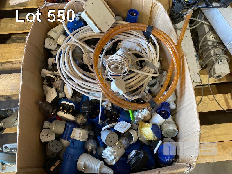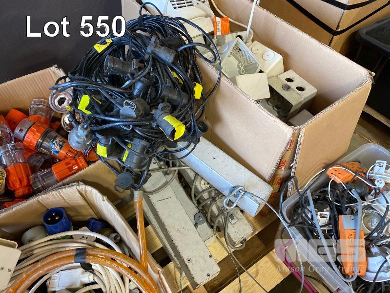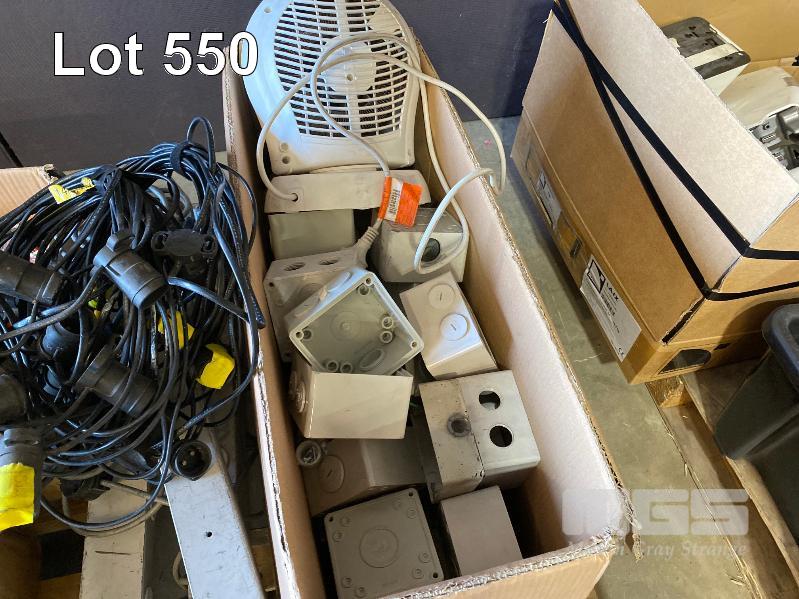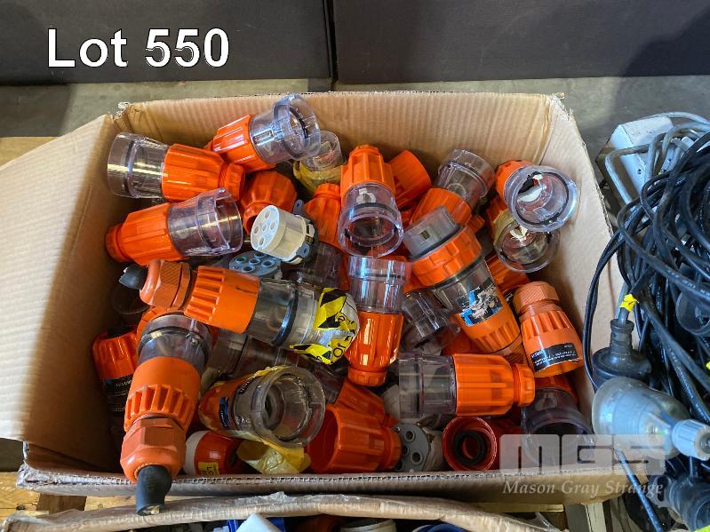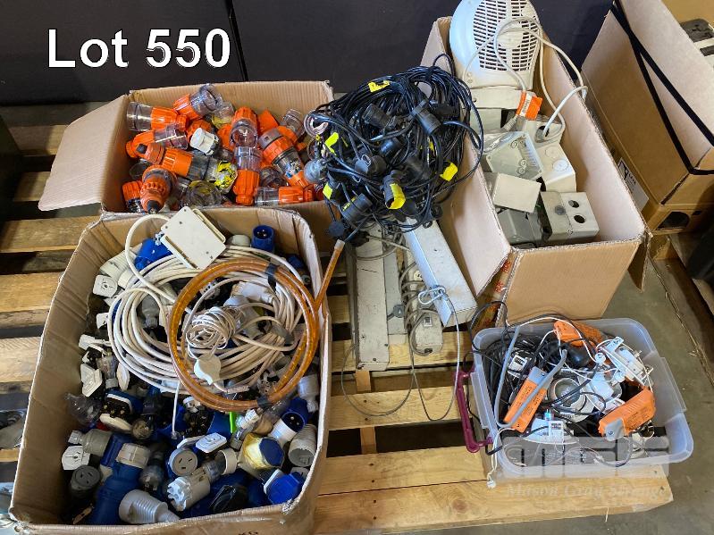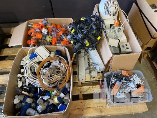 1 x PALLET LOT INC. 3-PHASE CONNECTORS, POWER BOARDS, 15AMP 240V CONNECTORS, ELECTRICAL ENCLOSURES, DOWNLIGHTS