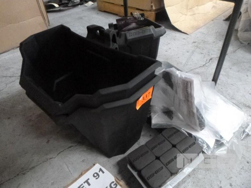 CAN-AM MUD FLAPS, 6 x TUBE CAPS, 3 x ADAPTOR KITS & 3 x ASSORTED PANIER STORAGE BINS