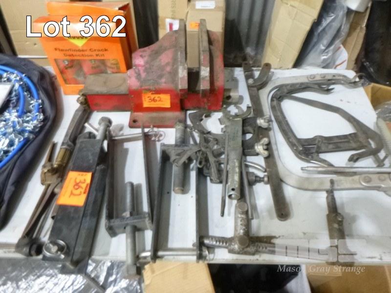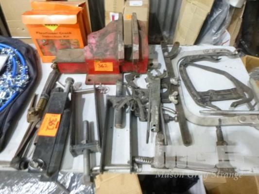 ASSORTED CLAMPS, 160mm OFFSET VICE, CUTTING TORCHES, VALVE COMPRESSORS, ETC