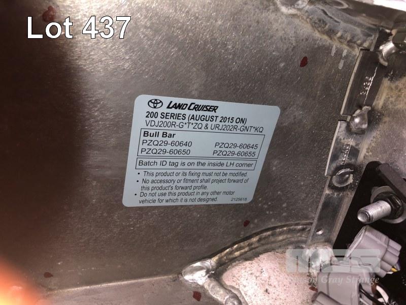 ALLOY BULL BAR, SUIT TOYOTA LANDCRUISER 200 SERIES, 2015 - ON PART NO: PZQ2960640 WITH MOUNTING BRACKETS & LIGHTING LOOM