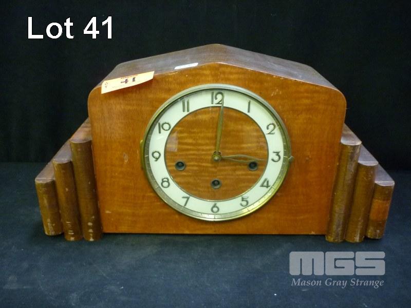 ART DECO, TIMBER MANTLE CLOCK