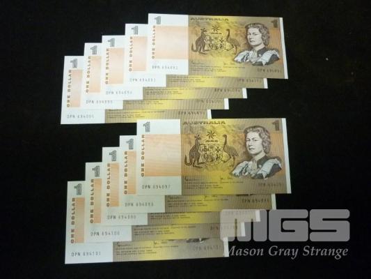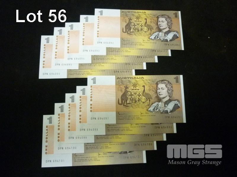 1982 10 x 1 DOLLAR CONSECUTIVE NOTES JOHNSTON STONE UNC