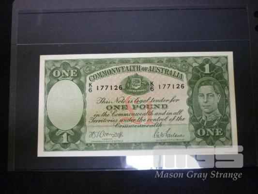 1942 1 POUND NOTE ARMITAGE MCFARLANE DARK GREEN APPEARS UNC