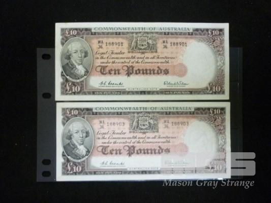 1960 2 X 10 POUND NOTE ALMOST CONSEC COOMBS WILSON APPEAR HIGH GRADE