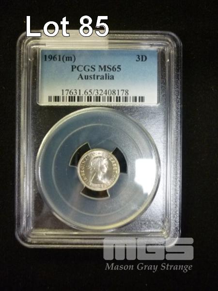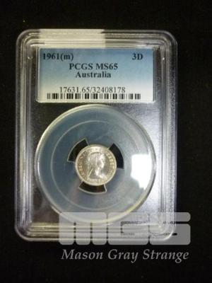 1961 AUST THREEPENCE PCGS GRADED GEM UNC 65