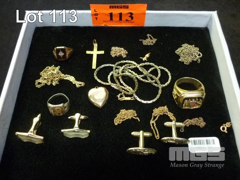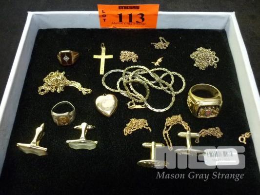 ASSORTED GOLD, GOLD PLATED, SILVER & DRESS JEWELLERY, INCLUDING DAMAGED