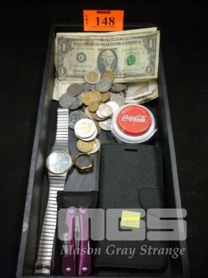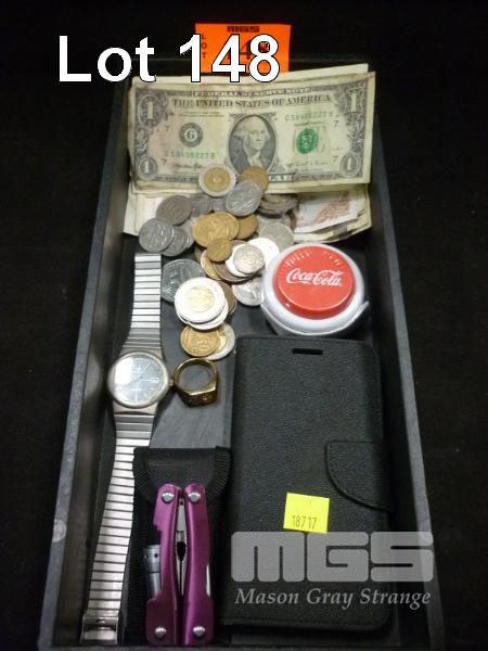 WORLD BANK NOTES & COINS, COCA-COLA YO-YO, PORSCHE DESIGN WATCH, RING MULTI TOOL & ZTE MOBILE PHONE
