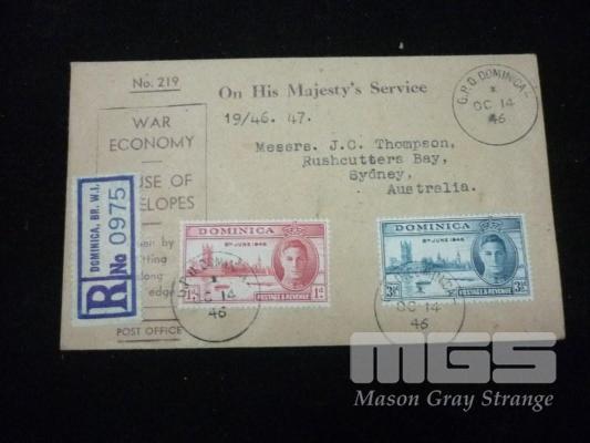 WAR TIME POSTAGE STAMPS & ENVELOPE SENT FROM DOMINICA TO SYDNEY