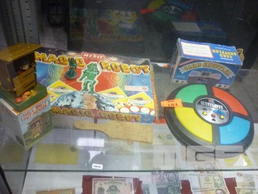 MERIT MAGIC ROBOT VINTAGE BOARD GAME, HILL BILLY OUT HOUSE IN BOX, CARD SHUFFLER, SIMON GAME