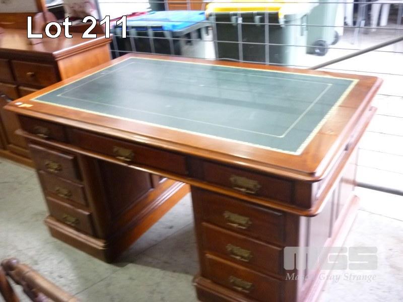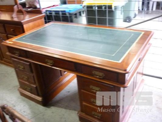 VINTAGE 3 PIECE, MAHOGANY, PARTNERS, BANKERS, PEDASTAL DESK, GREEN LEATHER INLAY, 9 DRAWERS (ORIGINALLY PURCHASED AT AUCTION, 30+ YEARS AGO IN THE BAROSSA)