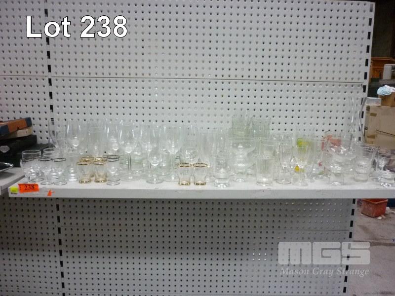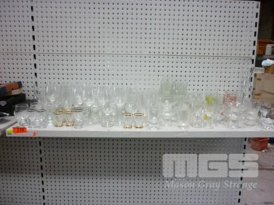 ASSORTED GLASSWARE, WINE, TUMBLERS, ETC