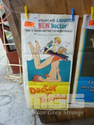 6 x VINTAGE DAYBILL MOVIE POSTERS, MODESTY BLAISE, IN GOD WE TRUST, BENNY HILL - THE BEST OF BENNY HILL, BLESS THIS HOUSE, DOCTOR IN TROUBLE, GO FOR A LAUGH WITH REG VARNEY IN DOUBLE TAKE
