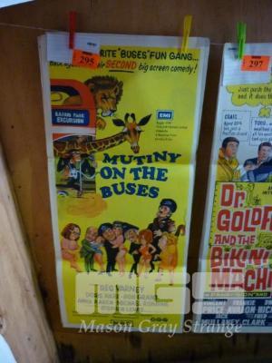 5 x VINTAGE DAYBILL MOVIE POSTERS, HOLIDAY ON THE BUSES, BLESS THE HOUSE, HERE WE GO AROUND THE MULBERRY BUSH, CARRY ON UP THE JUNGLE, MUTINY ON THE BUSES