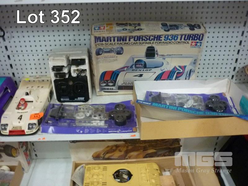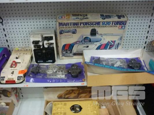 REMOTE CONTROL ELECTRIC RACE CAR, MARTINI PORSCHE, 936 LEMANNS, 1:12 SCALE, (REQUIRES REPAIR) WITH AEROFLYTE SANWA TRANSMITTER