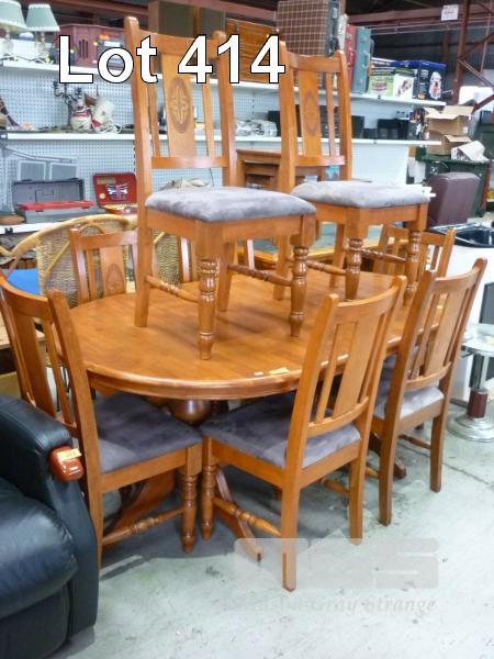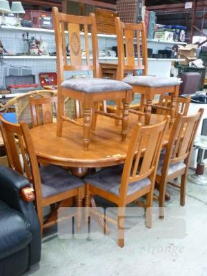 PINE 9 PIECE DINING SUITE INCLUDING OVAL EXTENSION TABLE, STRETCHER BASE & 8 x DINING CHAIRS