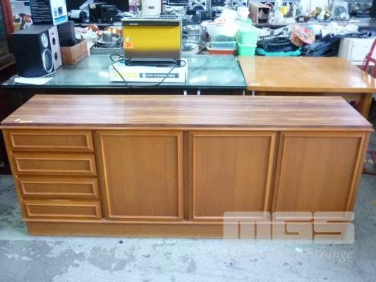 TEAK MID CENTURY SIDEBOARD, TIMBER LAMINATE TOP