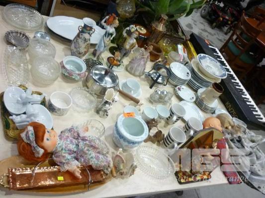 ASSORTED FIGURINES, DINNERWARE ETC (1 x TABLE)
