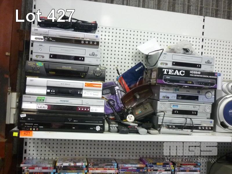ASSORTED VCR'S, REMOTES, HD RECEIVER, ETC