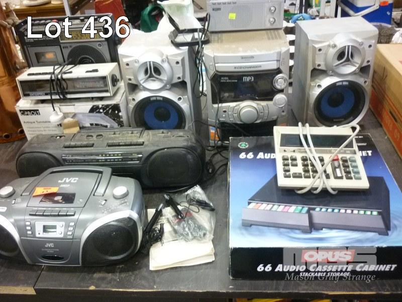 PANASONIC STEREO, COBOLT TURNTABLE, CASSETTE CABINET & PORTABLE STEREOS/RADIOS