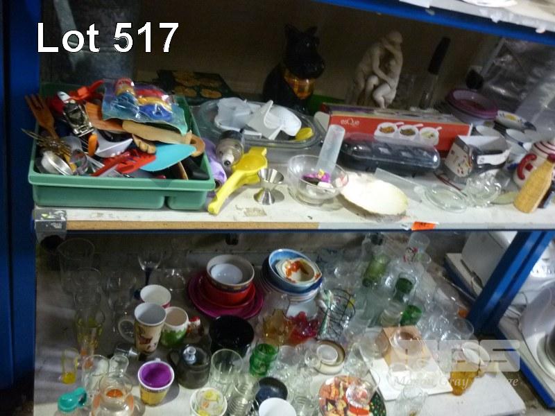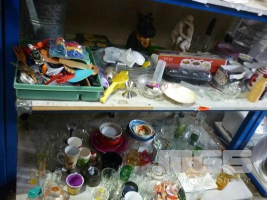 ASSORTED GLASSWARE, BOWLS, CUPS, ETC, 2 x SHELVES
