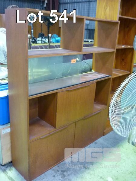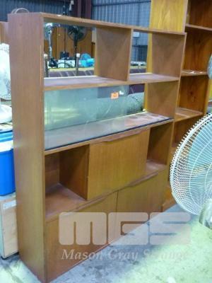 TEAK ROOM DIVIDER, WITH SLIDING GLASS DOORS & 3 x TIMBER DOORS WITH WATERFALL HANDLES