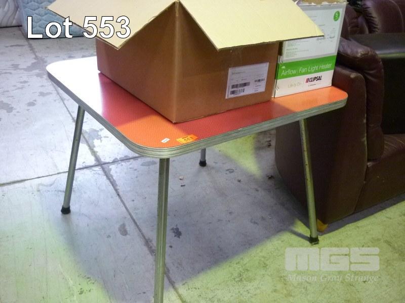 RETRO SQUARE DINING TABLE, RED LAMINATE TOP, CHROME LEGS