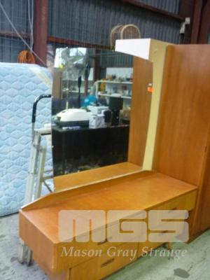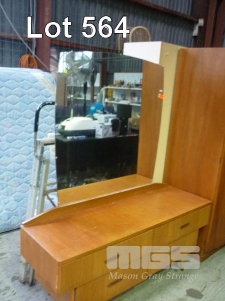 MID CENTURY MIRROR BACKED DRESSER, 4 x DRAWER ON LEGS