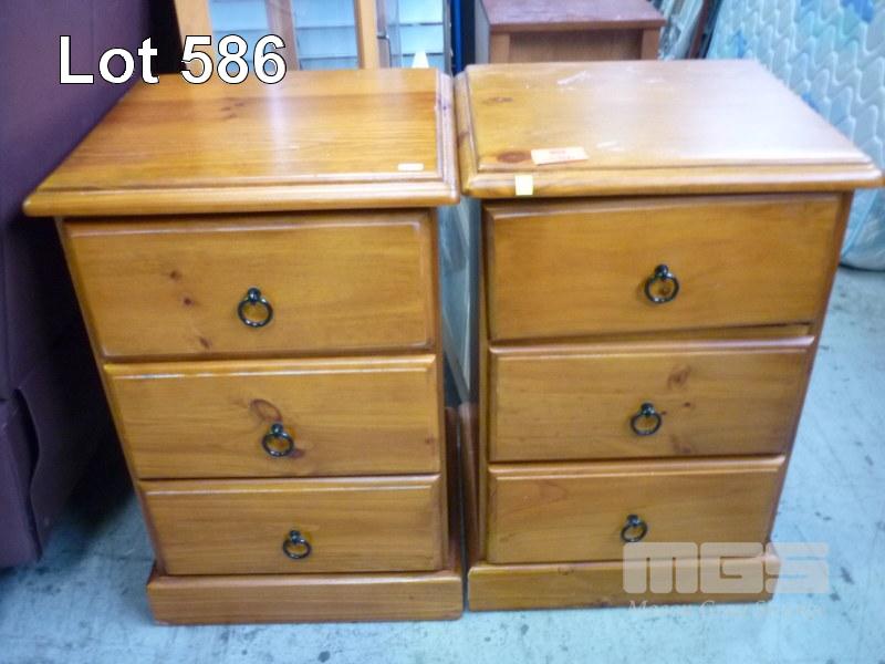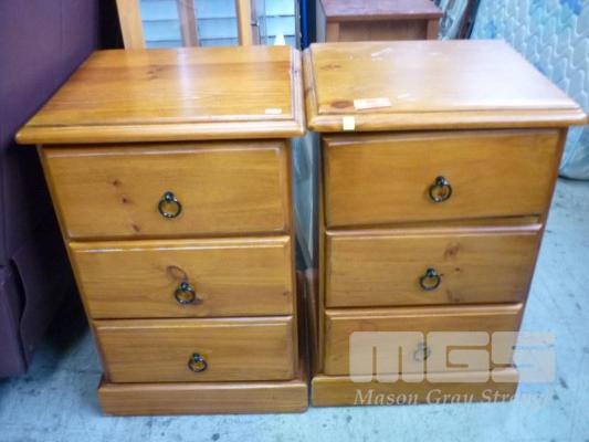 PAIR PINE 3 DRAWER BEDSIDE CABINETS