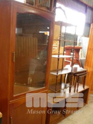 NEST OF TABLES, 5 TIER SHELVES, STORAGE CABINET WITH SLIDING DOORS & CORNER DISPLAY UNIT