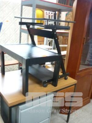 2 x DESKS, STEEL 2 DRAWER FILING CABINET & COFFEE TABLE