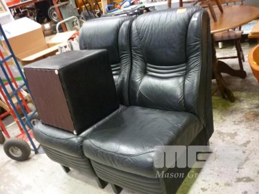 PAIR BLACK LEATHER MODULAR LOUNGE SUITE PIECES & FOOT STOOL