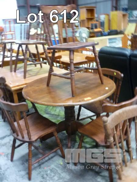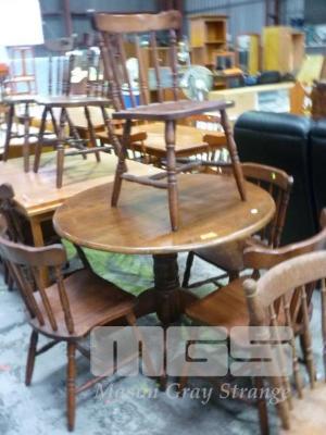 DINING SUITE, ROUND TIMBER DINING TABLE WITH 4 X MATCHING TIMBER DINING CHAIRS