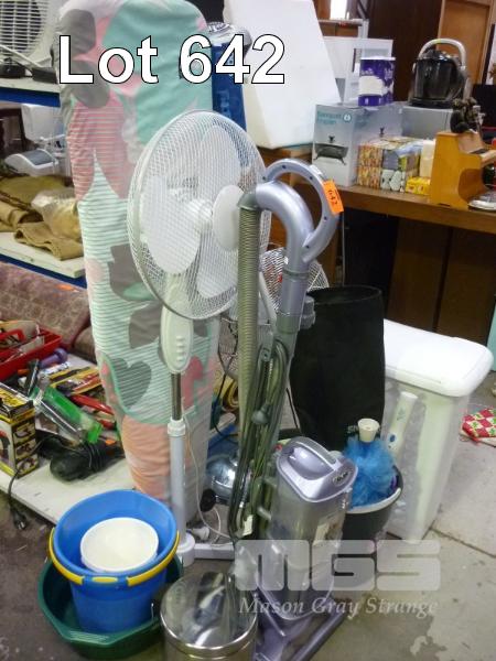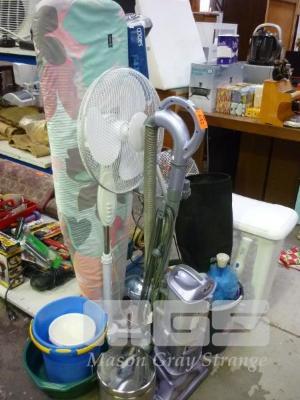 SHARK UPRIGHT VACUUM, 2 x FANS, IRONING BOARD, CLEANING ITEMS, LAUNDRY BASKET