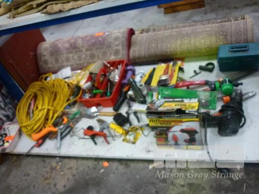 ASSORTED TOOLS, EXTENSION CORDS, ETC