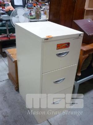 BEIGE METAL 3 DRAWER FILING CABINET, (NO KEY)
