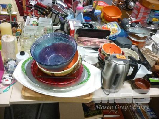 ASSORTED KITCHENWARE, COOKWARE, ETC, 1 x TABLE