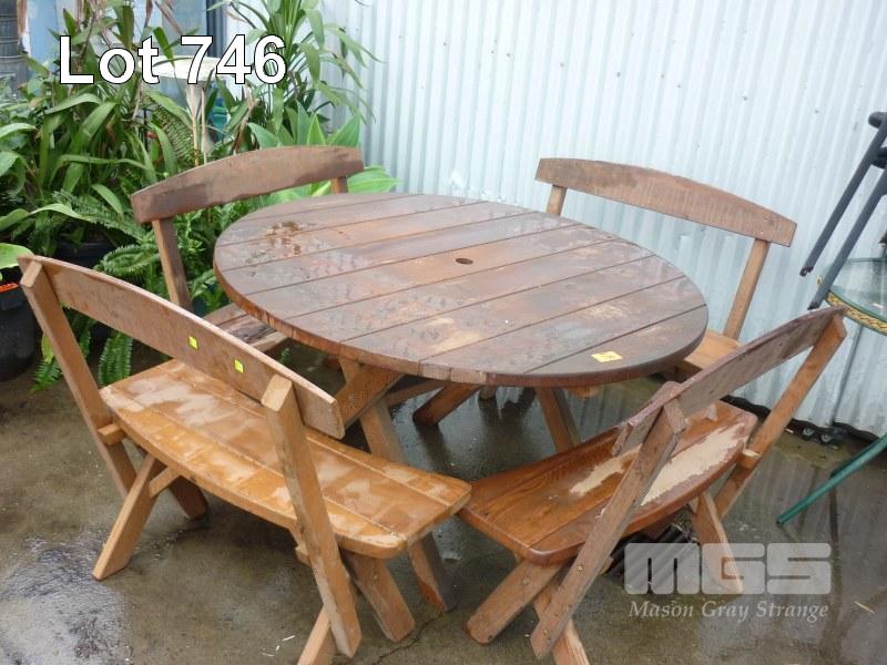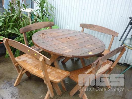 TIMBER OUTDOOR SETTING - TABLE AND FOUR BENCH SEATS