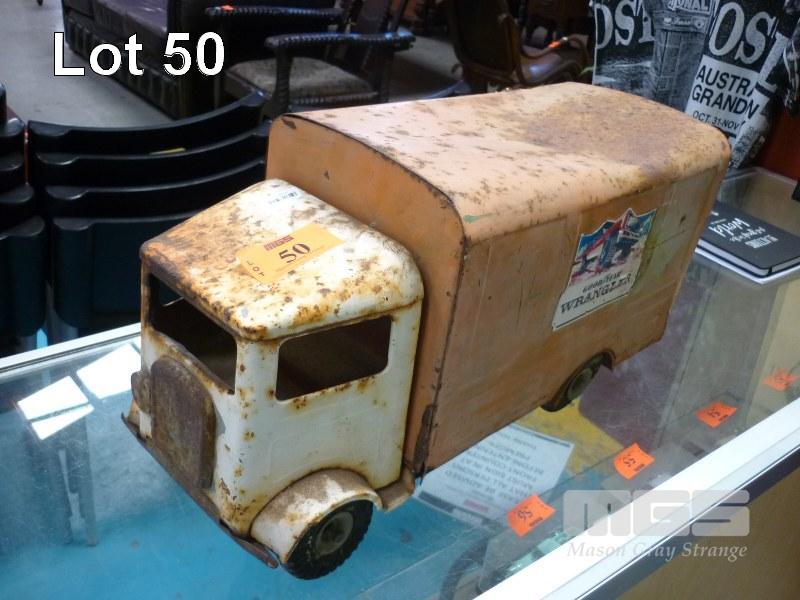 VINTAGE TRIANG TIN TOY TRUCK (DOOR & WHEEL MISSING)