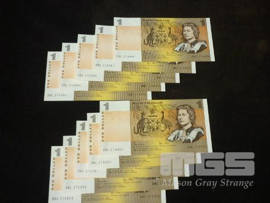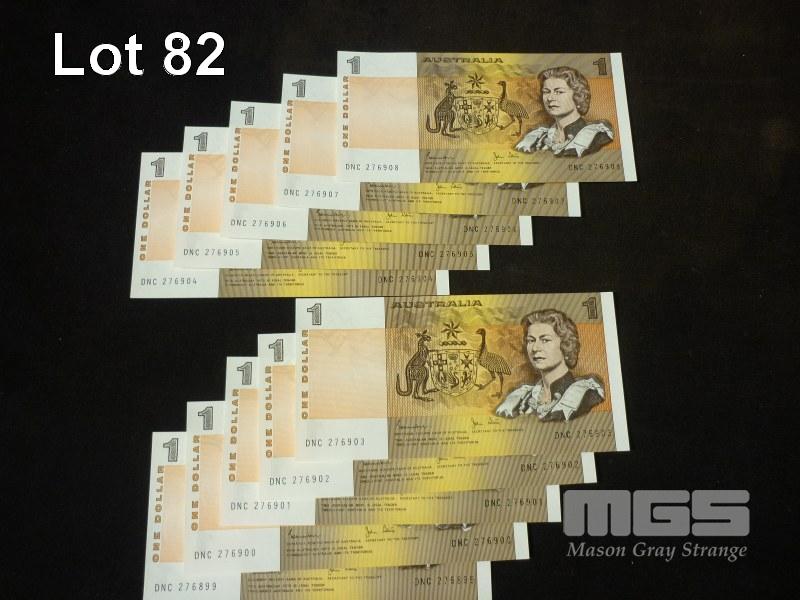 1982 10 x 1 DOLLAR CONSECUTIVE NOTES JOHNSTON STONE UNC